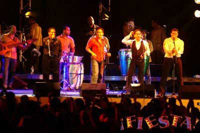 San Juan de la Maguana.-Kinito Méndez y su agrupación musical deleitaron a un gran públco que se divirtrió hasta más no poder, la noche del sábado .La actividad artística se llevó a cabo en la tarima ubicada en el lado oeste del Arco de Triunfo en la avenida Independencia y contó con los auspicios del Ayuntamiento de de este municipio.